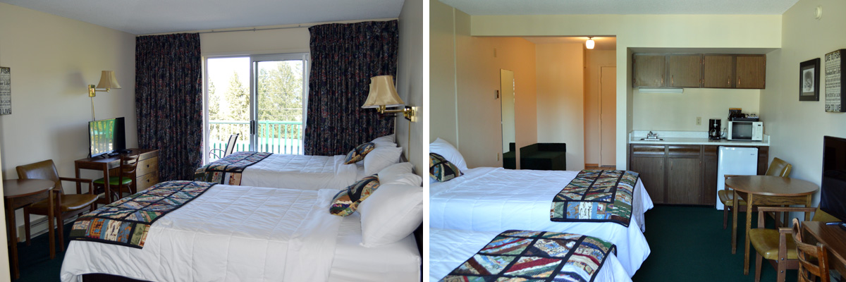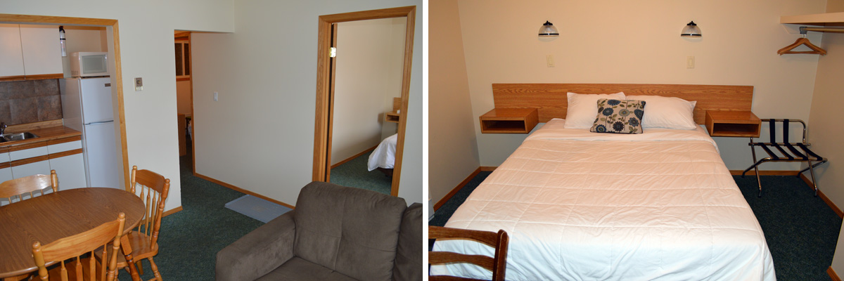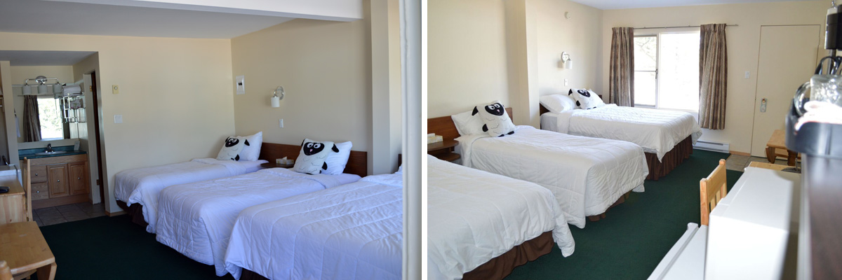 2 bedrooms, one with a queen bed, the other with two single beds and a hide-a-bed in the living room, a full kitchen with full sized refrigerator, stove/oven, microwave, coffee maker, digital cable TV and Internet.